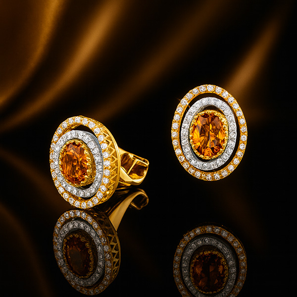 A yellow golden earring from our housecollection, model PonteVecchio, set with brilliant cut diamonds with a total weight of approx. 0,54 crt. en 2 citrine gemstones with a total weight of approx 1,40 crt.