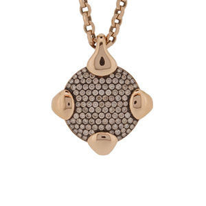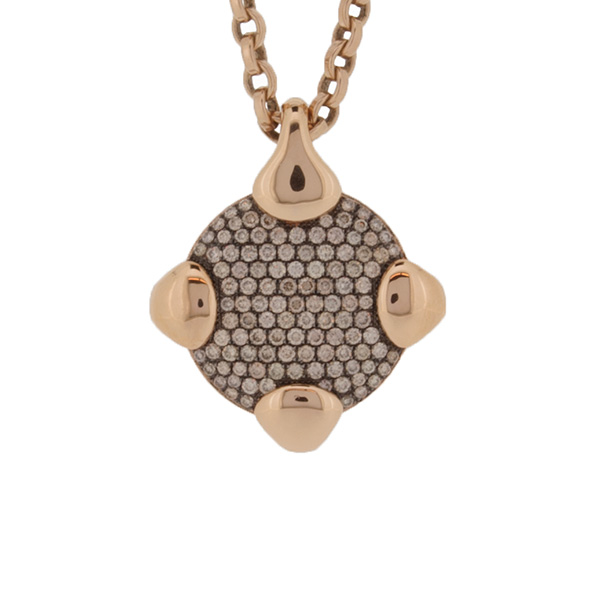 A pink golden pendant from our housecollection, set with 113 brilliant cut diamonds with a total weight of approx. 2,34 crt.