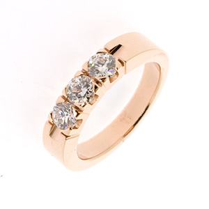 A pink golden ring from our housecollection, set with 3 brilliant cut diamonds with a total weight of approx. 1,00 crt.
