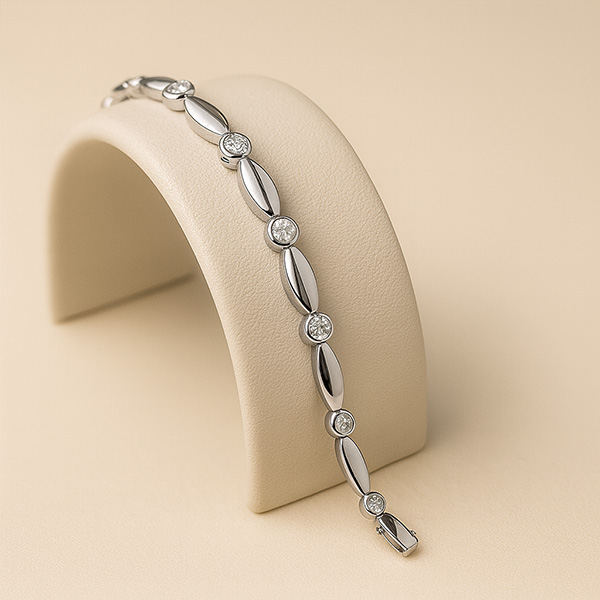 A white golden bracelet from our housecollection, set with 13 brilliant cut diamonds with a total weight of approx. 0,70 crt.