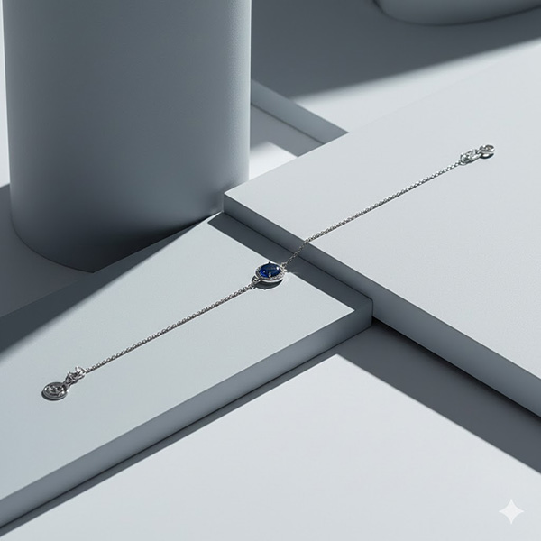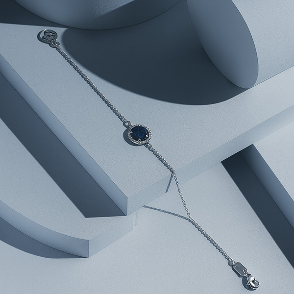A white golden bracelet from our housecollection, set with brilliant cut diamonds with a total weight of approx. 0,06 crt. en 1 sapphire with a weight of approx 2,50 crt.