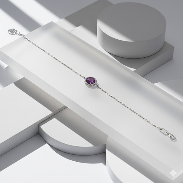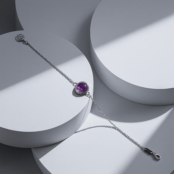 A white golden bracelet from our housecollection, set with brilliant cut diamonds with a total weight of approx. 0,06 crt. en 1 ruby with a weight of approx 2,50 crt.