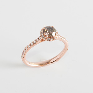 A pink golden ring from our housecollection, set with 32 brilliant cut diamonds with a total weight of approx. 0,27 crt. en 1 brilliant cut diamond with a total weight of approx. 0,57 crt.