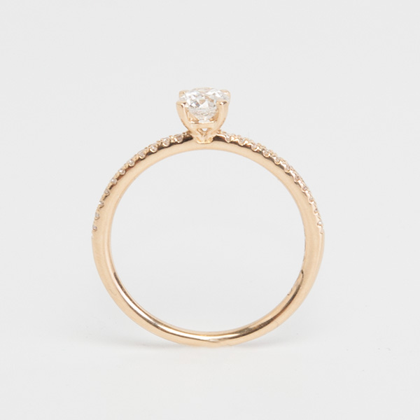 A yellow golden ring from our housecollection, set with 22 brilliant cut diamonds with a total weight of approx. 0,09 crt. en 1 brilliant cut diamond with a total weight of approx. 0,41 crt.