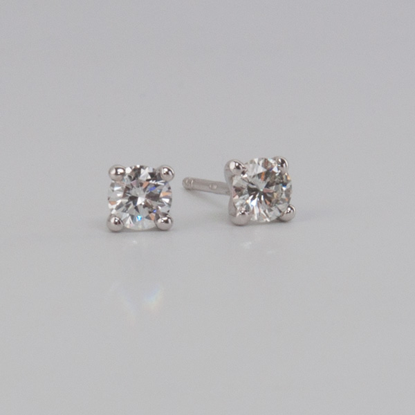 A white golden earring from our housecollection, model Solitair, set with 2 brilliant cut diamonds with a total weight of approx. 0,57 crt.
