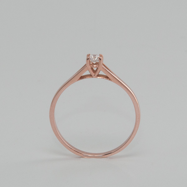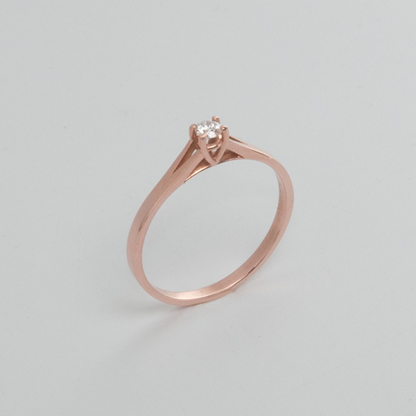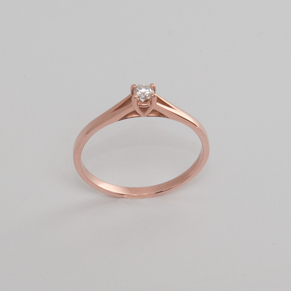 A pink golden ring from our housecollection, set with 1 brilliant cut diamond with a total weight of approx. 0,09 crt.