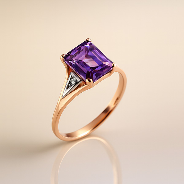 A pink golden ring from our housecollection, model PonteVecchio, set with 2 brilliant cut diamonds with a total weight of approx. 0,02 crt. en 1 amethyst gemstone with a weight of approx 2,65 crt.