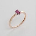 Een rozegouden ring uit onze huiscollectie, bezet met 28 briljant geslepen diamanten met een totaal gewicht van ca. 0,36 crt. en 1 ovaal geslepen robijn met een gewicht van ca. 0,92 crt.