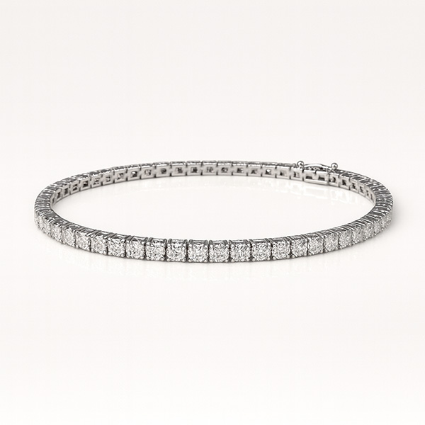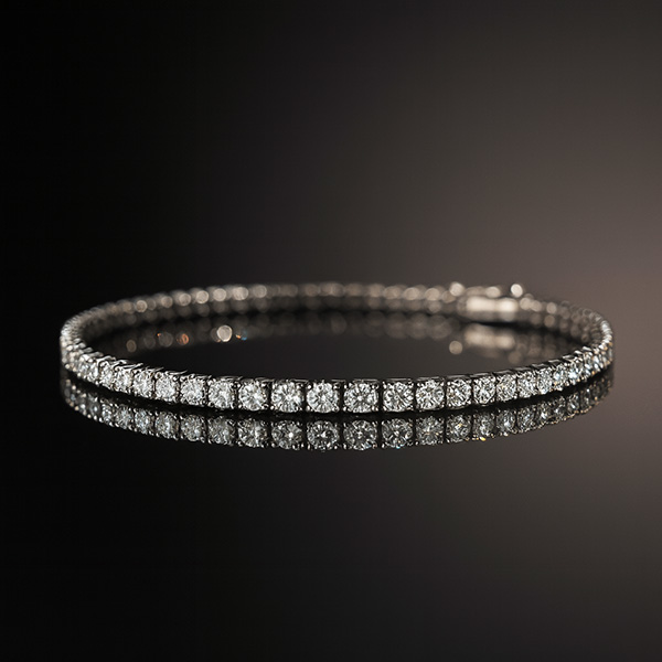 Een witgouden armband uit onze huiscollectie, model Alliance, bezet met 66 briljant geslepen diamanten met een totaal gewicht van ca. 2,87 crt.(H/vs)