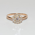 Een weinig gedragen, occasion, rozegouden solitairring met 1 briljant van ca.1Krt.