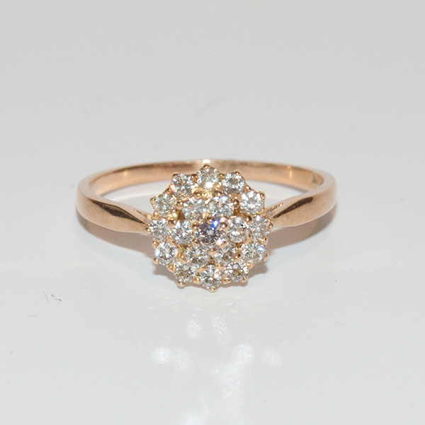 Een geelgouden ring uit onze vintage collectie, bezet met 19 briljant geslepen diamanten met een totaal gewicht van ca. 0,45 crt.